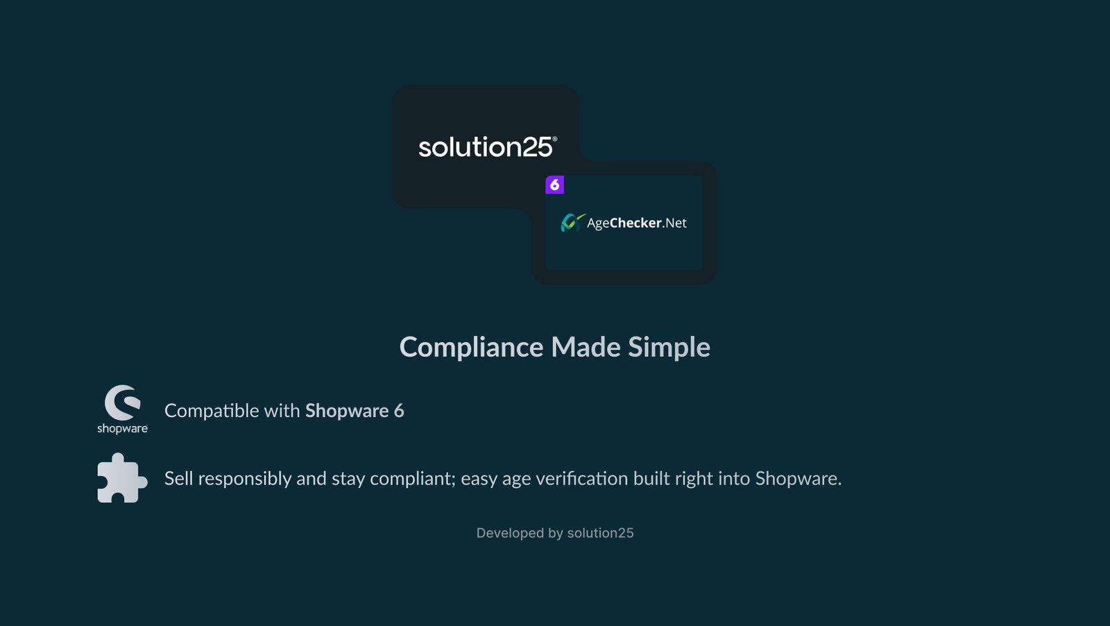 solution25 bietet das AgeChecker.net-Plugin für Shopware 6 an. Es ergänzt den Checkout-Prozess um eine sichere Altersverifizierung per Ausweis-Upload oder Datenbankprüfung. So unterstützt es Unternehmen, die altersbeschränkte Produkte verkaufen, bei der Einhaltung gesetzlicher Vorgaben und sorgt gleichzeitig für einen reibungslosen und verlässlichen Kaufprozess.